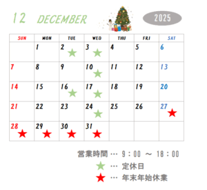 ★12月の定休日★