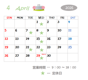 ★4月の定休日★