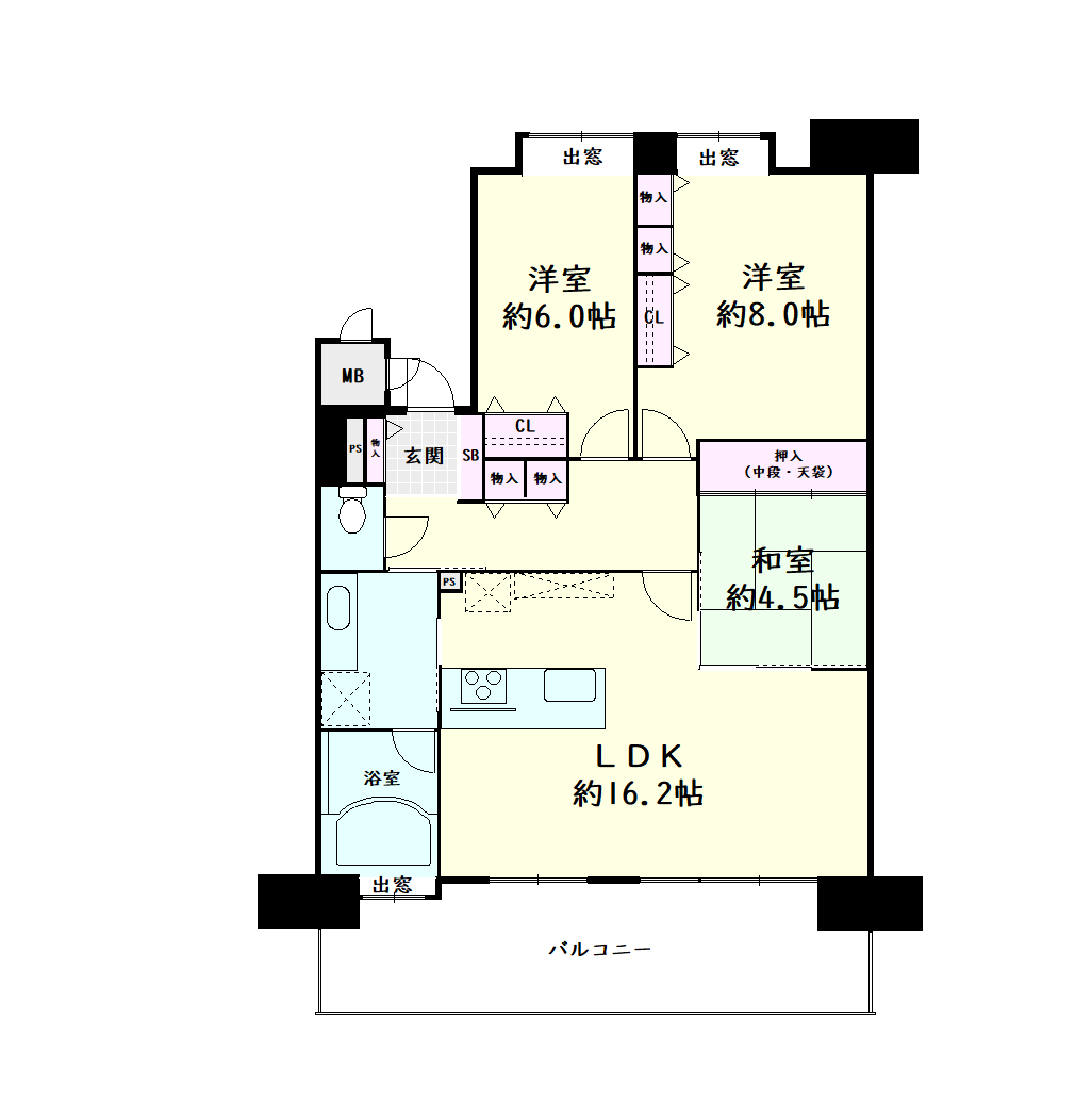 8階部分で南東向きで日当たり通風、眺望良好です!