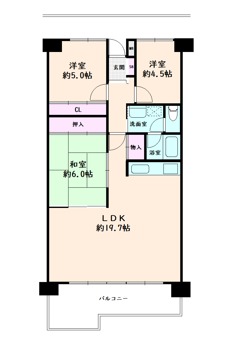 4LDK→3LDKに変更!リビングは19.7帖になりました!